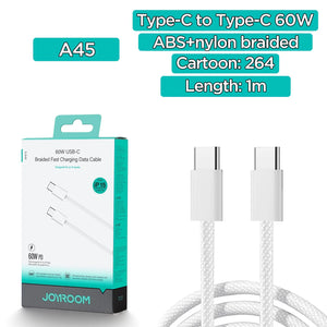 Ya sea que necesites una carga rápida, transferir archivos pesados o mantener tus dispositivos siempre conectados y listos, el Cable JoyRoom S-A45 es la solución perfecta. Hecho de materiales de alta calidad como ABS y nylon trenzado, este cable no solo ofrece un rendimiento superior, sino que también dura mucho más que los cables convencionales.