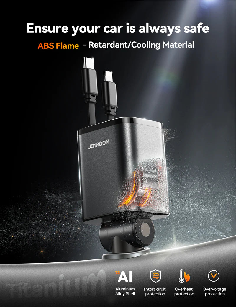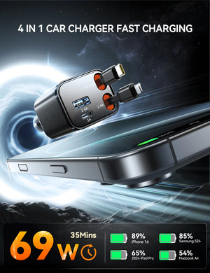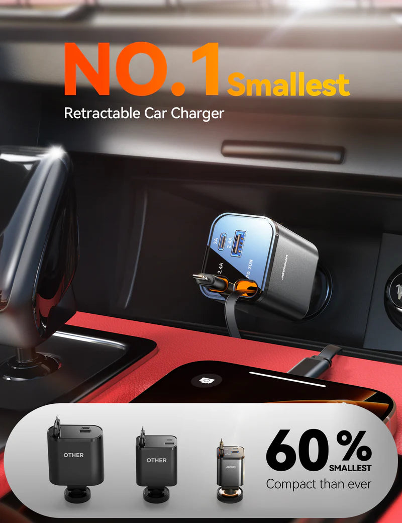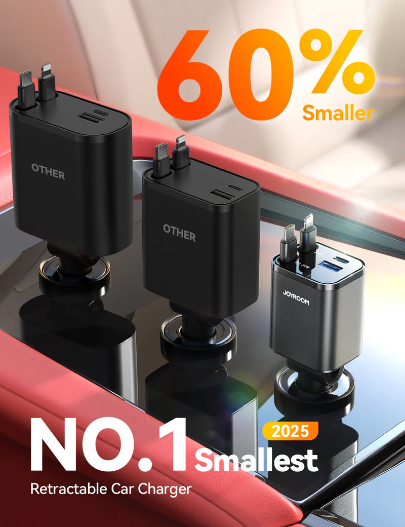Cargador de Auto Retráctil Joyroom CCL05 / 4 en 1 / Carga Rápida / Ultra Compacto