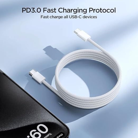 Cable 60W USB-C a USB-C 1M Trenzado Carga Rápida